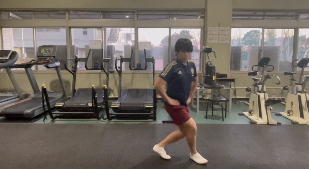フォワードランジ:膝内外反しないように、ニュートラルを保つ