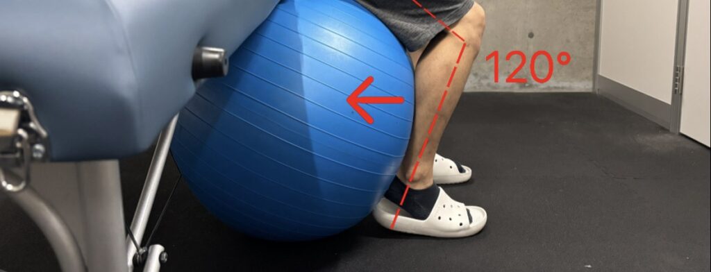 ③バランスボールを下腿後面でボールを潰すようにして行う