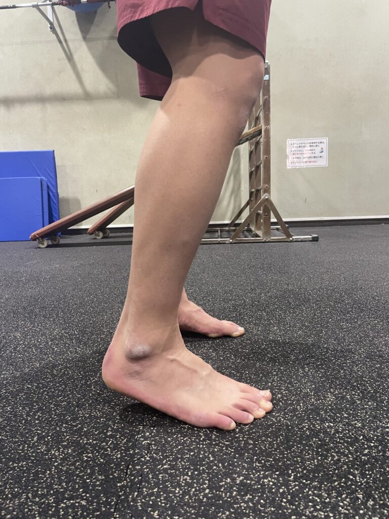 足関節内反捻挫後には底屈筋機能の低下に加えて、ヒールレイズ動作において母指球荷重が保てず外側荷重になりやすい